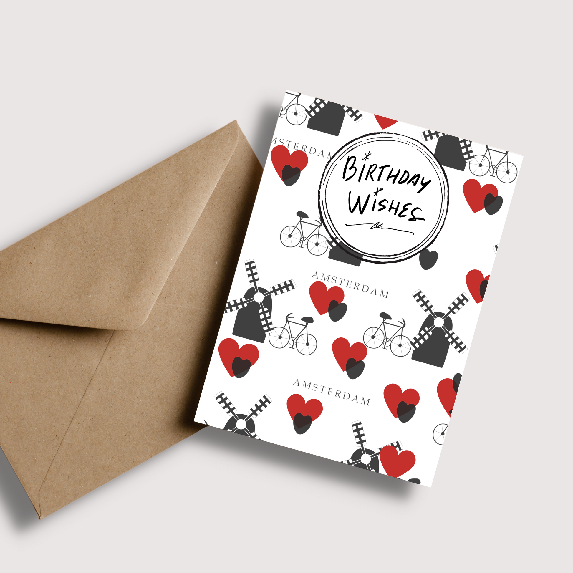 All our greetings cards from our Amsterdam Collection are A5 size and come complete with an envelope.