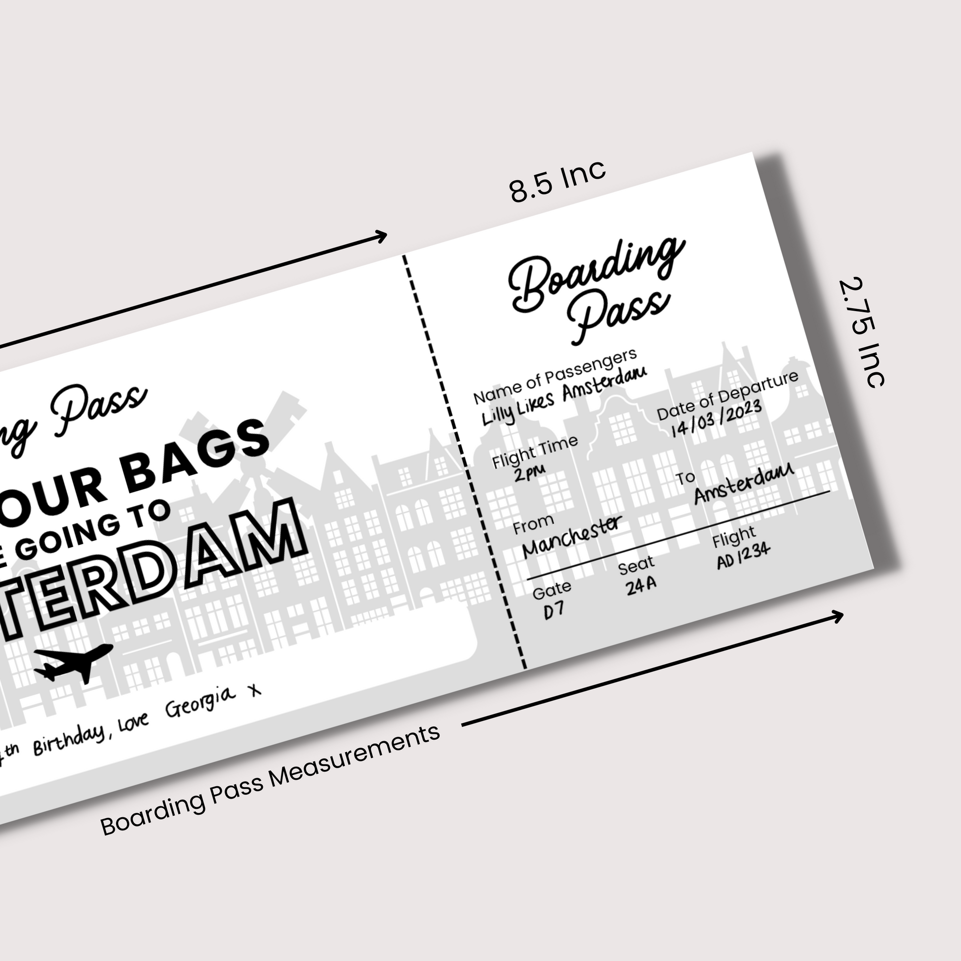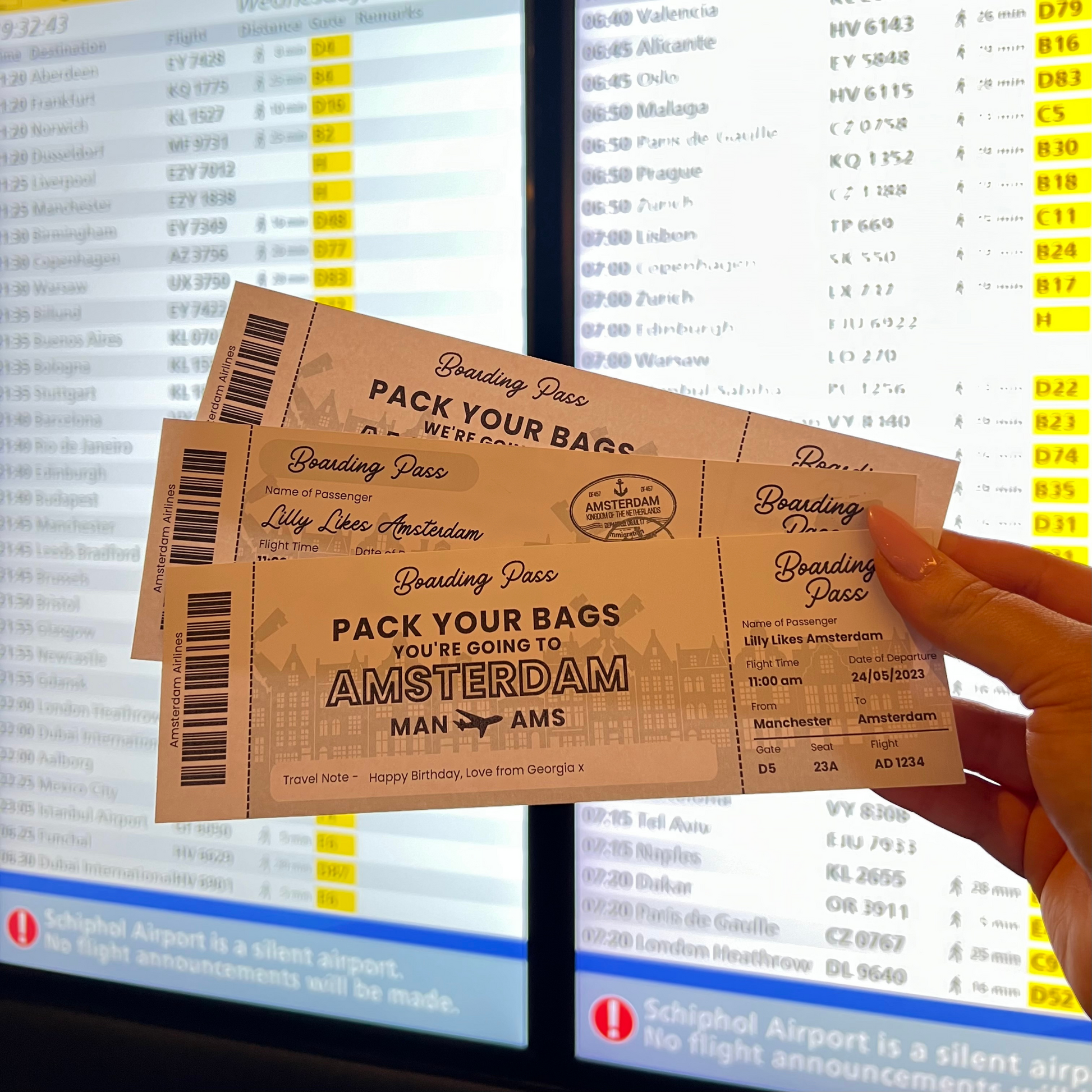 Our novelty boarding pass/travel tickets are a fun and playful way to mimic real events or activities, to surprise your nearest and dearest. They are designed to look like a genuine boarding pass but with personalised information, other designs are simply used for gifting purposes. Please note they are not used for actual travel purposes.